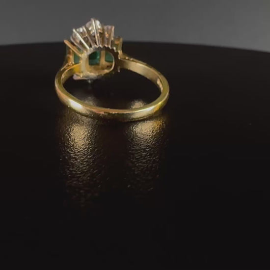 Vintage 1978 18ct Gold Emerald & Diamond Trilogy Cluster Ring – London Hallmarks – Size M